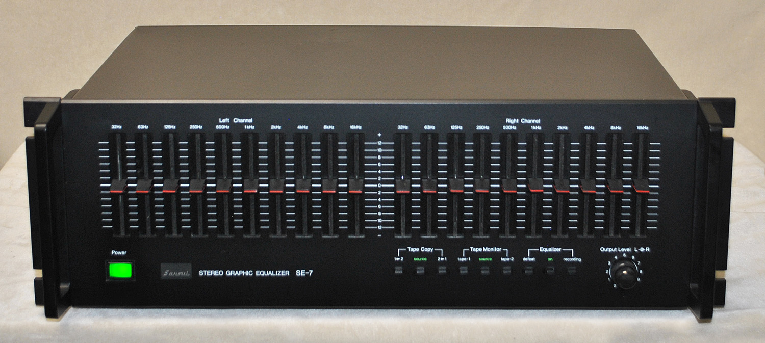 Beautiful Super Clean, Black Face Vintage 70's Sansui SE-7 10 Band Graphic Equalizer w/ Two Tape Monitors, Output Level Control, EQ Defeat/ Bypass Switch. Rack Ears. Ex.Cond 9.2