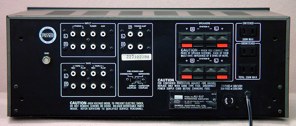 Vintage Late 70's Beauty, Wonderful Sound and Plenty of Power! Classic Sansui AU-517 Integrated Amplifier. Rated at 65 watts rms/ch into 8 ohms. Phono, Aux, Tuner, Tape 1&2 inputs. Preamp out/ Main in w/separation switch. Speakers A&B, (3) AC Outlets. Fully Recapped and Restored and Ready to Rock! Ex.Cond 9.0